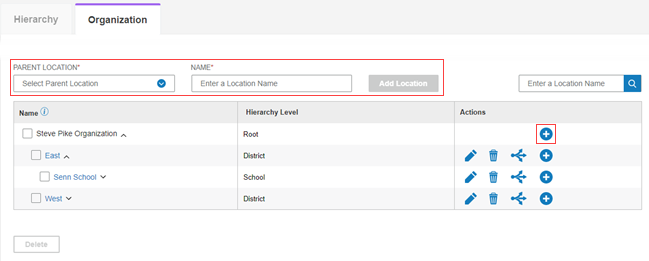 a. Click the add icon on the row of the parent location.