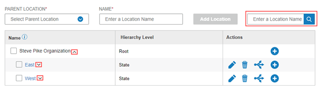 You can use the search function to find locations or expand the list in the Name column to view more locations.