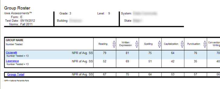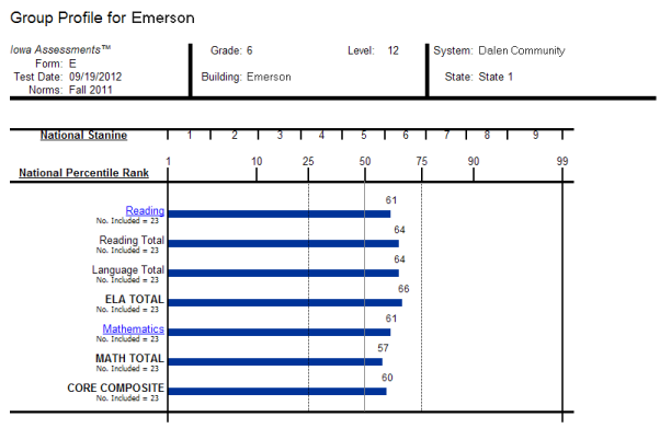 scores for the selected group(s)—all classes within a building, for example--in